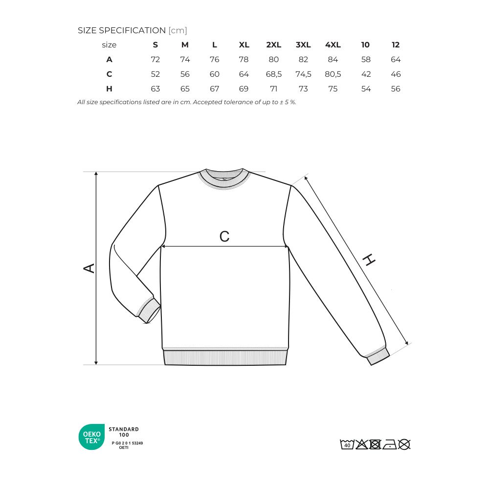 • Rib cuffs, hem and neckline 1:1 rib with 5% elastane